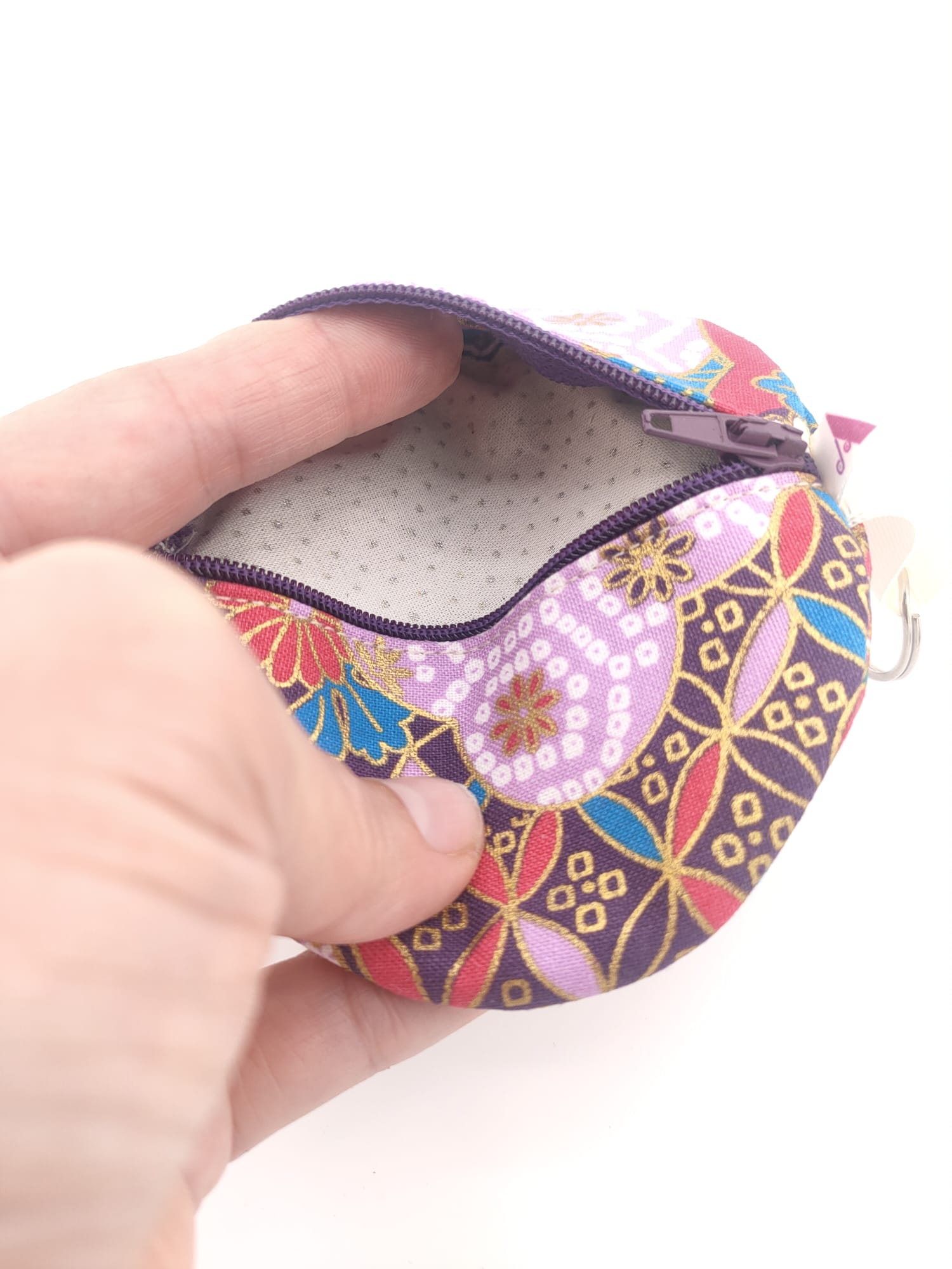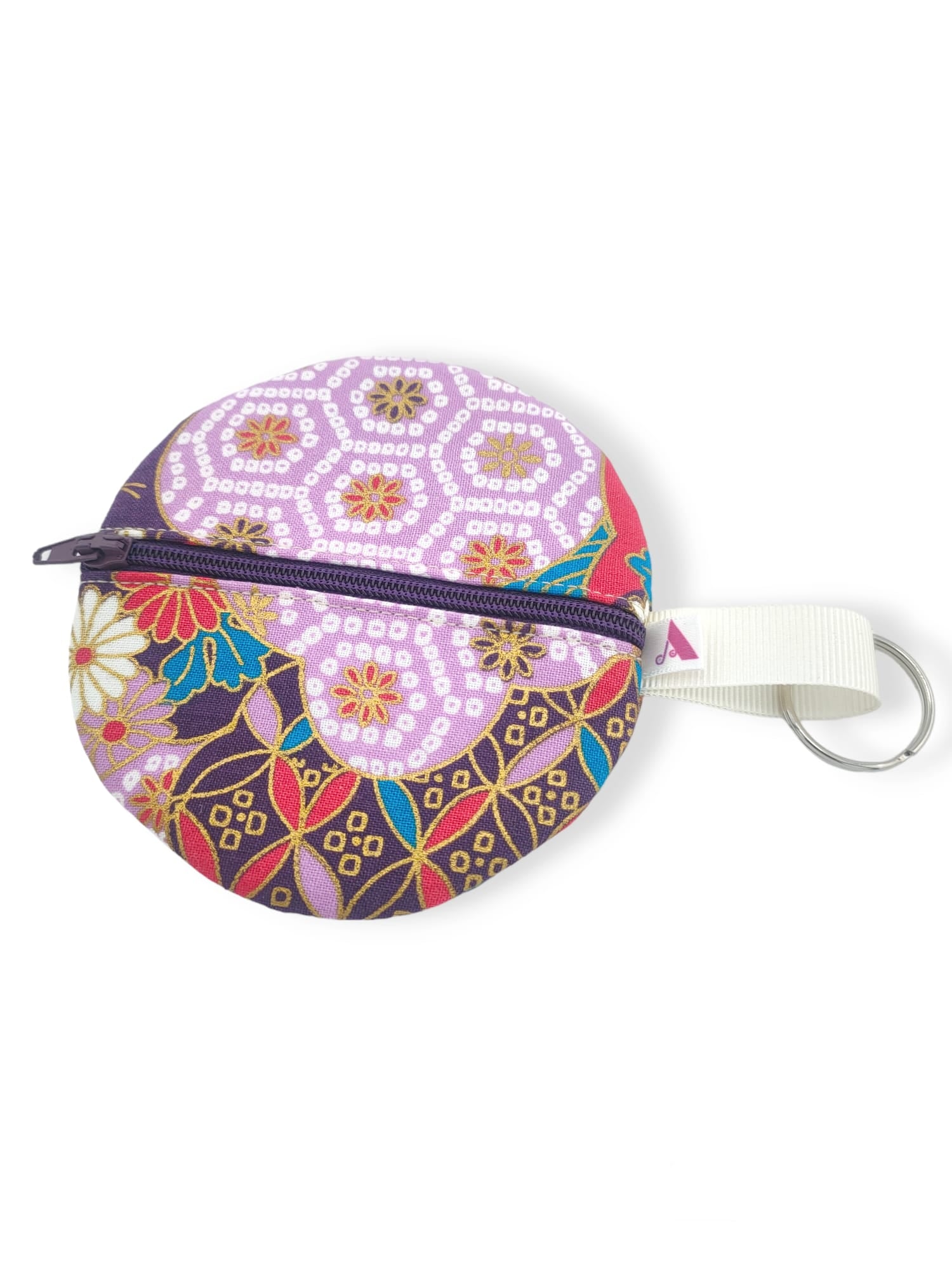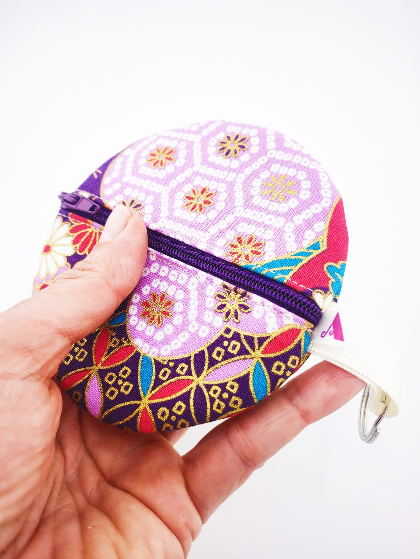 Monedero redondo de tela reforzada fabricado en nuestro taller. Medidas 10cm Ø.