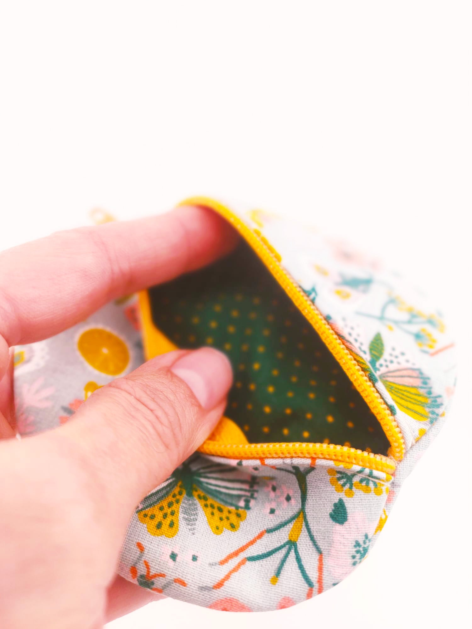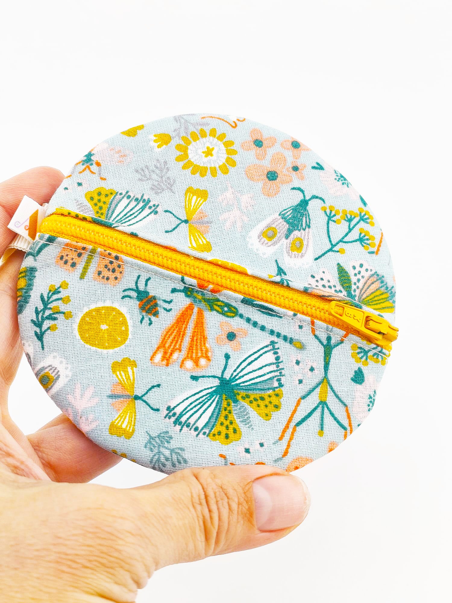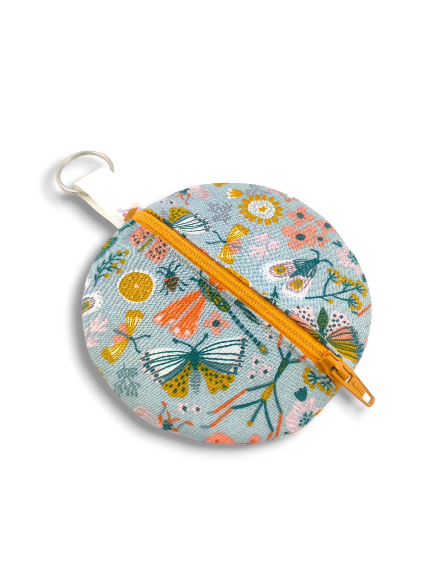 Monedero redondo de tela reforzada fabricado en nuestro taller. Medidas 10cm Ø.