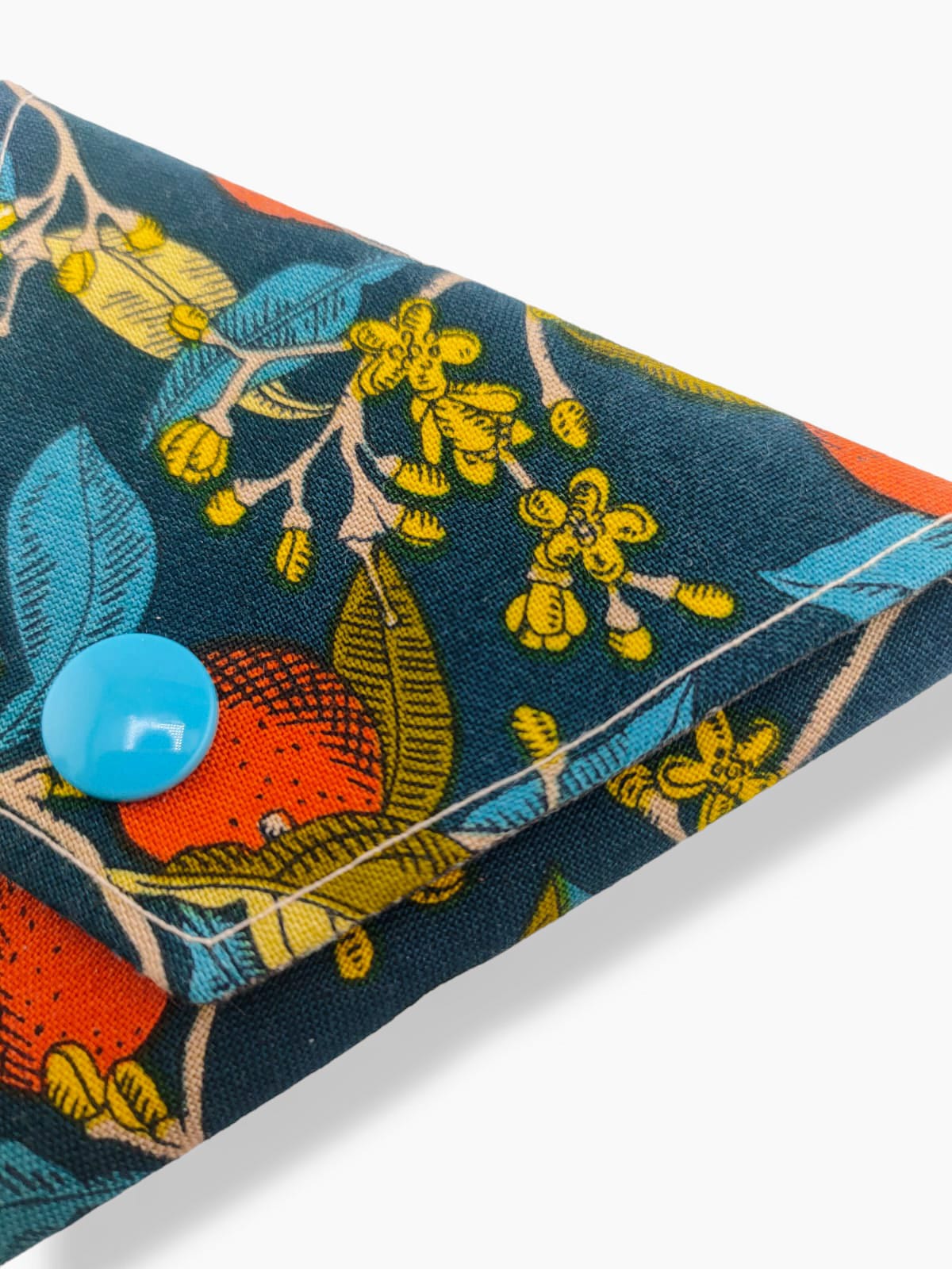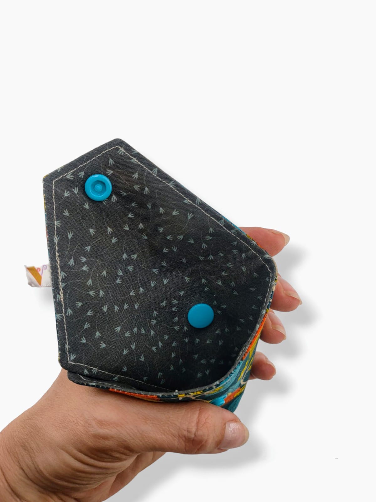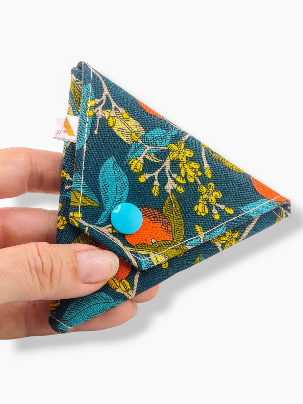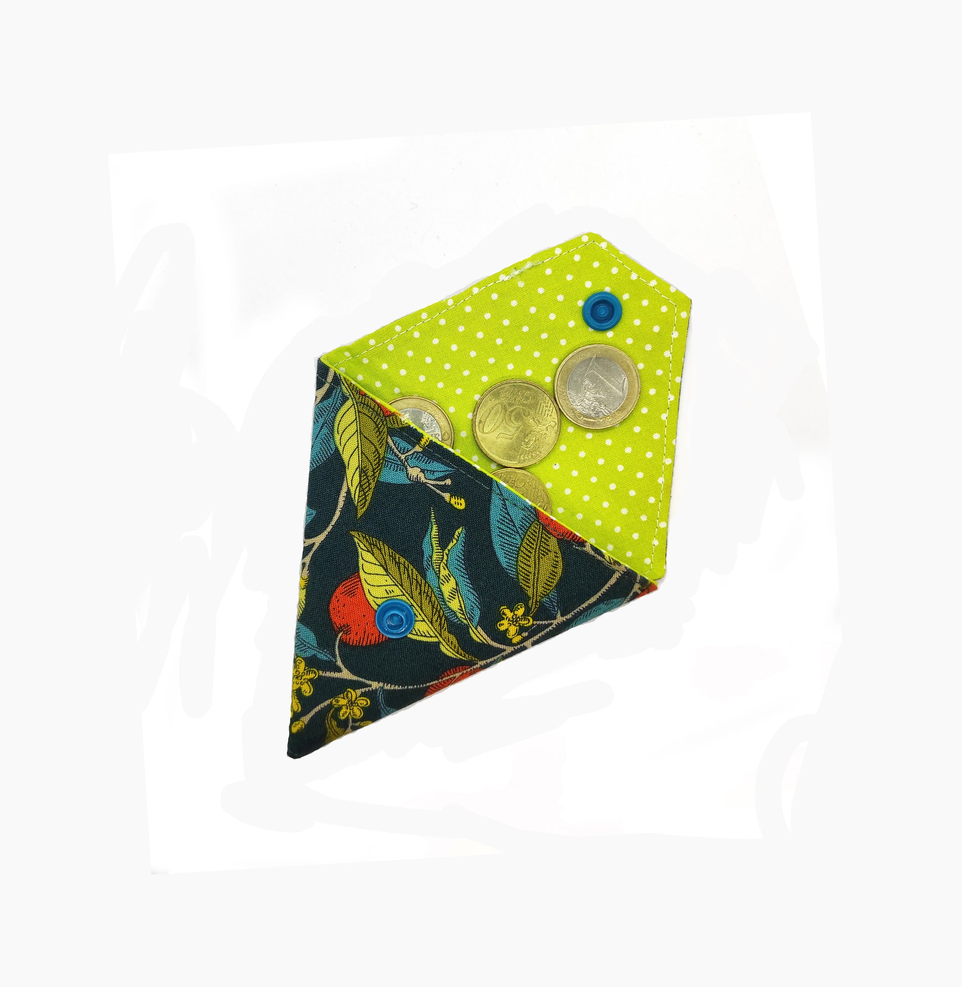 Monedero triangular de tela reforzada fabricado en nuestro taller.
