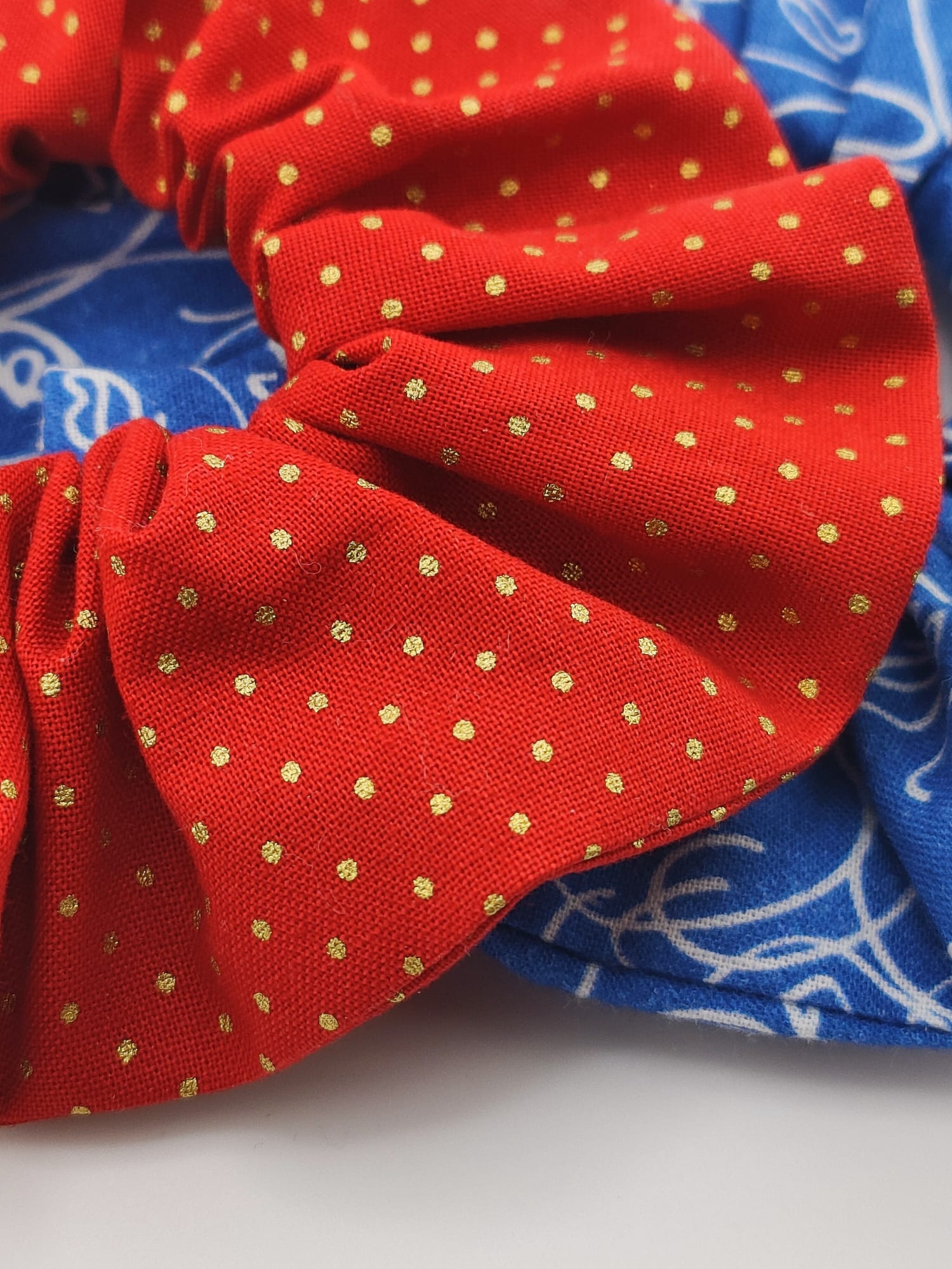 Conjunto de dos coleteros de tela de algodón. 11cm.